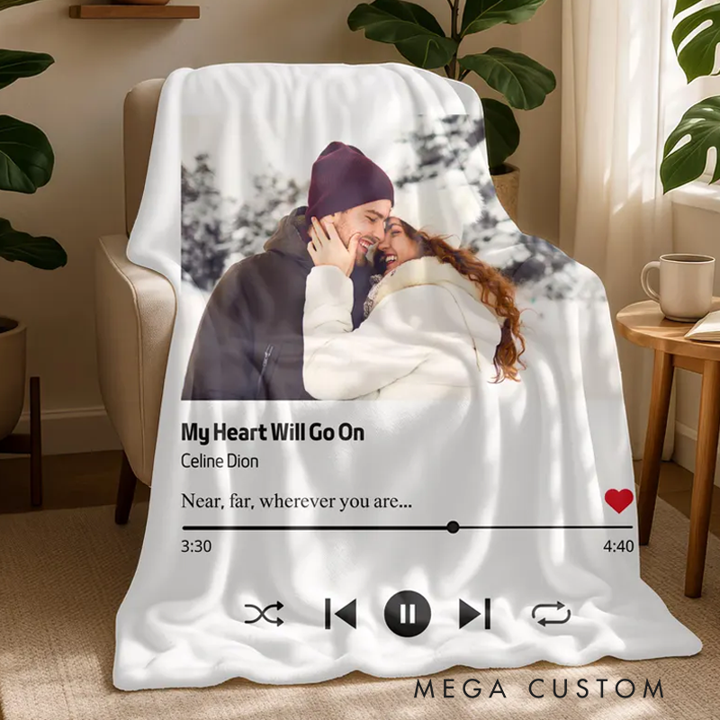 Personalized Love Songs Blanket with Photo Custom Picture and Song Name Blanket Flannel Music Blanket for Couples Album Cover Songs Music Throw