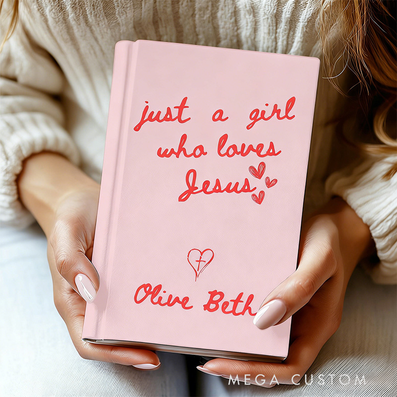 Personalized Just a Girl who Loves Jesus A5 Prayer Journal Notebook with Name and Text Gift for Christian Religious Gift for Girls