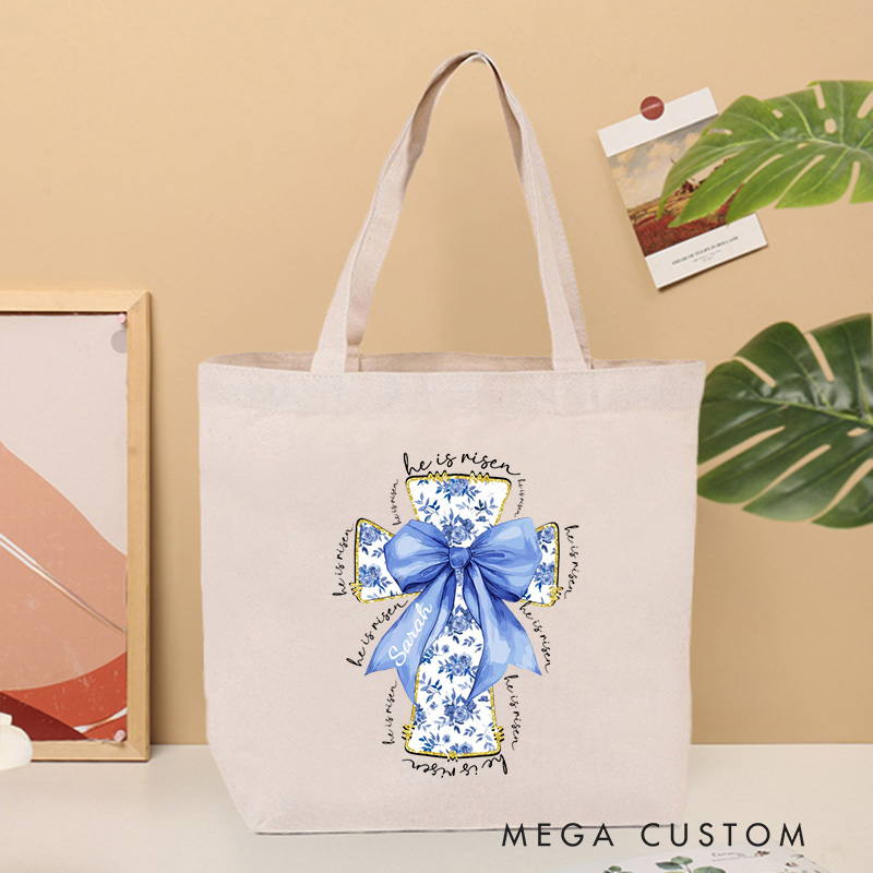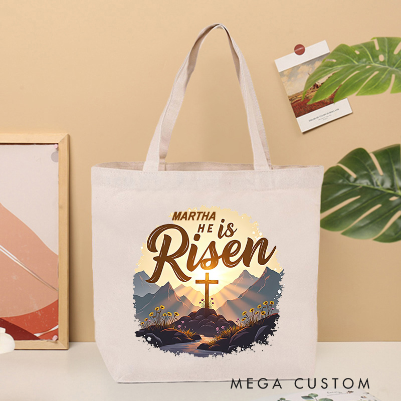 Personalized He Is Risen Bible Verse Canvas Tote Bag with Custom Name Christians Gift Birthday Gift Christian Travel Gift for Jesus Lover