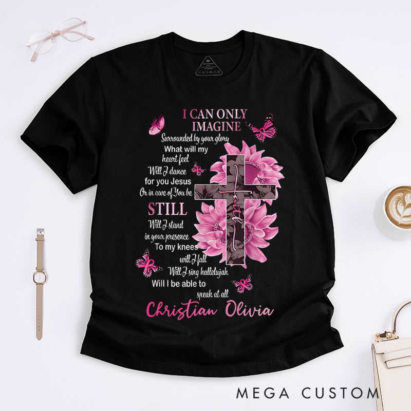 Personalized Classic T-Shirts I Can Only Imagine Beautiful Cross and Flowers Graphic T-Shirt