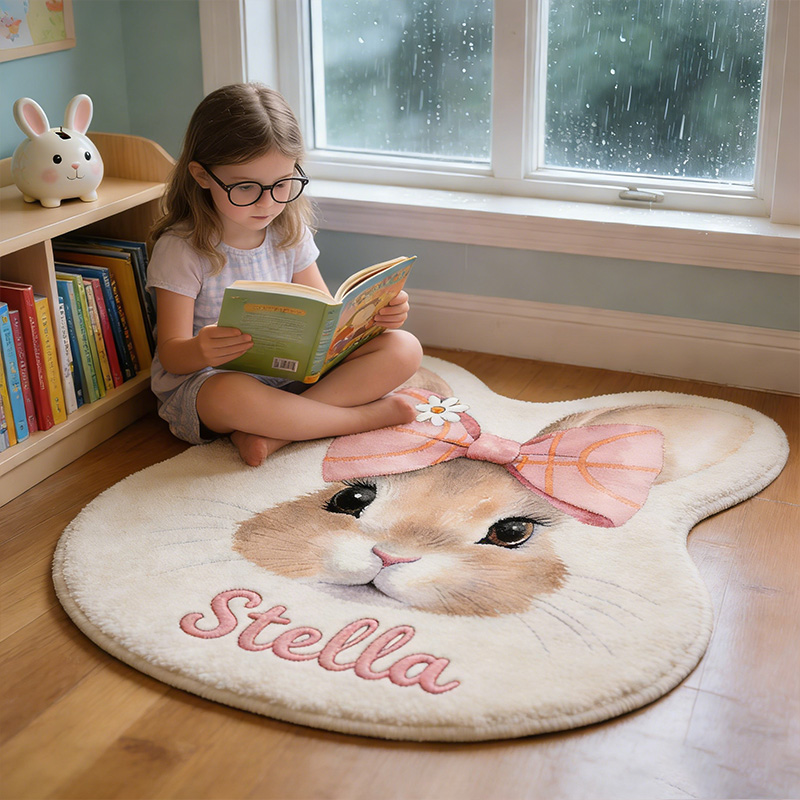 Personalized Easter Bunny Basketball Rug with Custom Name for Kids Easter Gifts