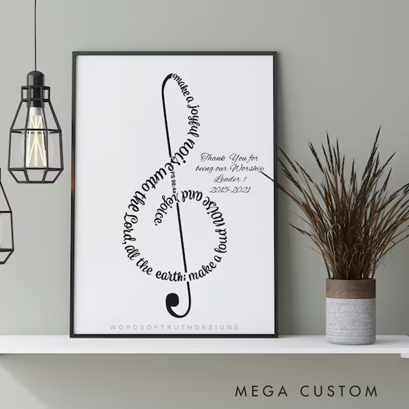 Personalized Psalm 98 Music Treble Clef Scripture Bible Verse Word Art Music Lover Gift Christian Music Studio Decor Frame Not Included