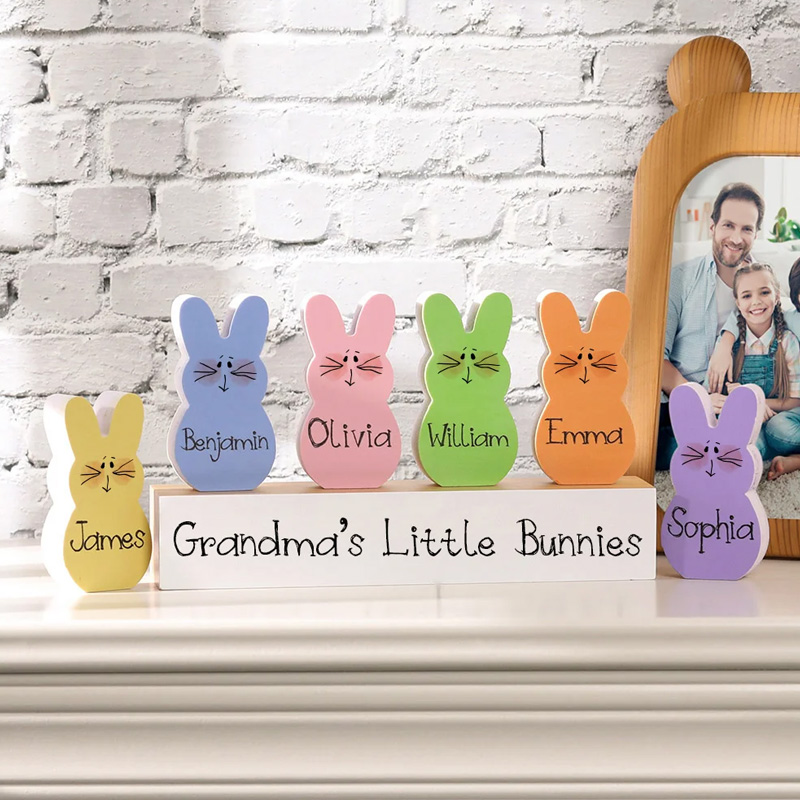Personalized 1-12 Easter Bunnies Family Wooden Block Set with Name Colorful Blushing Bunny Home Decoration Easter Gift for Mom Grandma