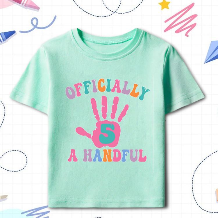 Personalized Officially a Handful Kids T-Shirt with Colorful Handprint and Name for a Fun Birthday Celebration
